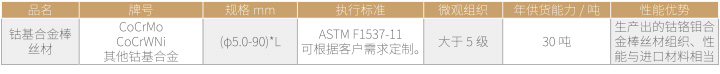 生产出的钴铬钼合金棒丝材组织、性能与进口材料相当